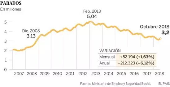 今年到目前为止,参与社会保障的人数新增562,544人,但现在无法断言2018年底仍会有超过50万的参保者,因为11月和12月并不是用人高峰期。然而,如果保持这种增长速率,西班牙将会在四年后回到该数据的历史最高值。